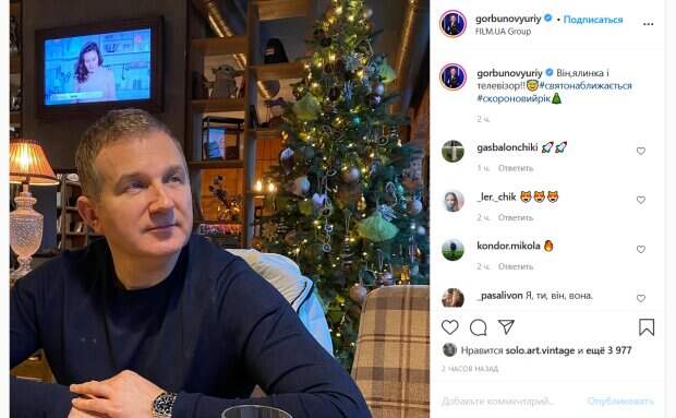 Известный украинский ведущий Юрий Горбунов показал, в какой компании проводит вечер Как сообщает Politeka.net, шоумен поделился новым фото в своем Инстаграм. На нем Горбунов показал, как проводит один из предновогодних вечеров. Ведущий сидит за столом в темно-синей кофте, а за его спиной можно заметить включенный телевизор и наряженную красавицу-елочку.
