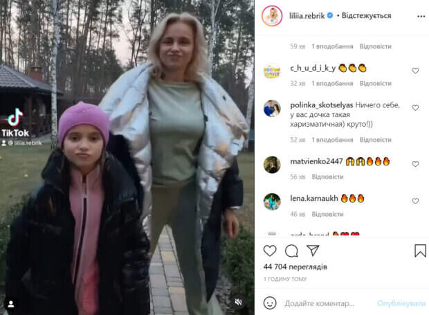 Лилия, как прогрессивная мама, решила исследовать молодежную социальную сеть Тик Ток и записала танец вместе с дочкой. Девчонки стояли на улице и были тепло одеты. Стоит отметить, что Диана и Лилия очень красиво двигались. Это не удивительно, ведь муж Лилии Ребрик хореограф. С ним она познакомилась во время участия в шоу «Танцы со звездами». «Вечерняя зарядка», - подписала видео с дочкой Ребрик. В комментариях ей оставили массу приятных отзывов. Не обошлось и без критики. «Хватит пиариться, надоела уже», «Мамина копия», «Ничего себе, у вас дочка такая харизматичная) круто!», «Ну вы девчонки», «Умнички», «Мимика Ди, это просто огонь... крутая малая», «ого, девочка такая харизматичная, кайф», «Классный драйвовый танец получился!», - пишут пользователи сети. Напомним, что модница Лилия Ребрик покрутилась в ярких нарядах, засветив стройную фигуру: "Выбирайте...". Как сообщала Politeka, Лилия Ребрик показала себя с мужем в дико пикантных позах: "Как говорила Верка Сердючка...". Также Politeka писала, что Лилия Ребрик в экстравагантном наряде произвела фурор на "Дизель шоу", эпичные кадры: "Не пропустите".