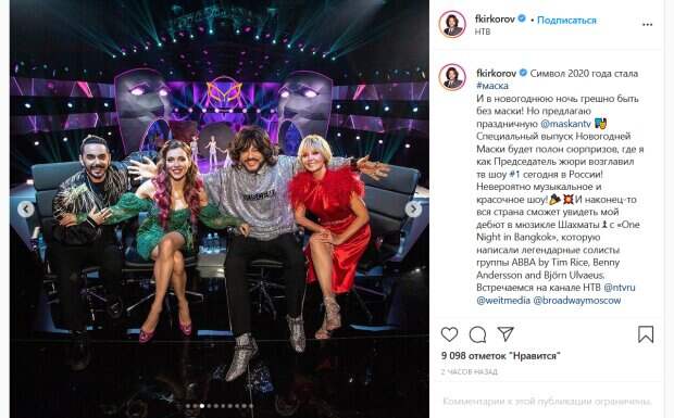 Компанию ему составили Регина Тодоренко, Тимур Родригез и Валерия. Для праздничного выпуска певец не мог не выбрать экстравагантный наряд. Так, он позирует в серебристой толстовке из искрящейся ткани, сверкающей всеми цветами радуги. В свою очередь, Тодоренко появилась на съемках в элегантном зеленом платье с полупрозрачными рукавами. А вот Валерия выбрала ярко-красный наряд. Поклонники певца активно комментируют его публикацию. «Суперские фотографии! Безумно ждём Новогоднюю ночь. Король», «Очень ждём вы самый лучший», «Филипп, здравствуйте) С Наступающим Новым годом Вас и Всю Вашу Талантливую и Дружную Семью! Ух, ты! Мы Очень- Очень Ждем! И Пусть В 2021 году Маски будут только Праздничными!», «Филипп вы наш праздник! ждём с нетерпением новогодних шедевров от Вас! Любим», «Как всегда на высоте наш Король! Слова излишни», «А для чего такие стрелки на глазах? Вы мужчина или кто? Шут вы гороховый, фууу», - пишут люди. Напомним, стареющий Киркоров показал свою новую музу в пикантном халатике, Бузова ахнула. Как сообщала Politeka, осунувшийся Киркоров с густой бородой ошеломил неопрятным видом перед свадьбой. Также Politeka писала, что Орбакайте и Киркорова подловили вдвоем, пока другие спят: неожиданные кадры взбудоражили сеть.