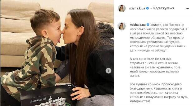 Все лучшее со мной происходило благодаря ему. Решимость, сила и непоколебимость, вот качества которые я получила в награду за путь материнства! Мой родной, талантливый, иногда дерзкий, не по годам взрослый, мой уникальный!», - рассказала артистка. Мишина поделилась своими принципами в воспитании ребенка. «Я стараюсь принимать его и не пытаюсь переделать. Не ставить за него детальки LEGO, а дать ему ощущение, что даже если он ошибётся, я всегда помогу. Моя главная задача, не формировать его, а сохранить его индивидуальность. Не сломать! Уже сейчас бывает сложно и как мама, я вижу как лучше, но в тоже время, как мудрость во мне говорит, это не только твой сын, это и мужчина, ты должна уважать его и его решения», - уверена артистка. Она призналась, что легко бывает не всегда, но желание договориться все же помогает. «Но пока я вижу как горят его глаза, которыми он смотрит на меня, я самая счастливая на свете», - пишет «холостячка». Ксения Мишина утверждает, что самой большой ценностью в жизни считает радость своего ребенка. «И для меня нет большего счастья, создавать в его жизни незабываемые моменты: праздники, сюрпризы, подарки! Если бы можно было собирать детскую радость в батарейки, мы могли бы ездить на электромобилях без заправки