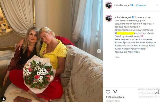 Юленька и ее супруг Дима. Такой душевный вечер», - говорится в сообщении. Обратим внимание что на первом снимке Волочкова позирует рядом с Юлией, к которой близко прижалась. При этом для снимка знаменитость выбрала спортивные штаны и кофту, которую приоткрыла до неприличия. На другой фотографии Волочкова позирует в мини-платье, демонстрируя идеальные ноги в веранде. Комментарии при этом балерина оставила закрытыми, поскольку пользователи сети обвиняют ее в двуличии. До этого мы писали, что российская балерина Анастасия Волочкова показала себя дома На фото Анастасия сидела в коротеньком голубом платье. Волочкова расположилась на диване, сняв обувь. Звезда демонстрировала свои длинные ноги, которые не были ничем прикрыты. Балерина полностью забралась на диван, а сама смотрела в камеру. Фанаты поставили только тысячу лайков и не писали комментарии. Все из-за того, что Волочкова не любит критику и закрыла их, но так и хочется сказать: "Неожиданно". Напомним, неугомонная Волочкова в облегающих штанах «дала жару» на репетиции А еще Politeka писала, что раскрепощенная Волочкова устроила "вертолеты" ногами Также Politeka сообщала, что уставшая Волочкова в розовых штанах "дала жару" во время репетиции
