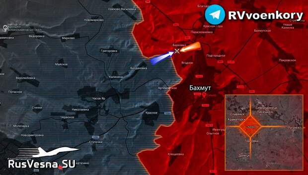 Враг перешёл в наступление на Берховку, важный населенный пункт на фланге Артёмовска. Бронегруппа 57 бригады ВСУ прорвала первую линию обороны и заняла окрестности стратегически значимого населенного пункта. Об этом сообщает «Русская весна». В ответ на наступление врага, наши военные совершили контрудар и уничтожили часть наступающих вражеских сил.