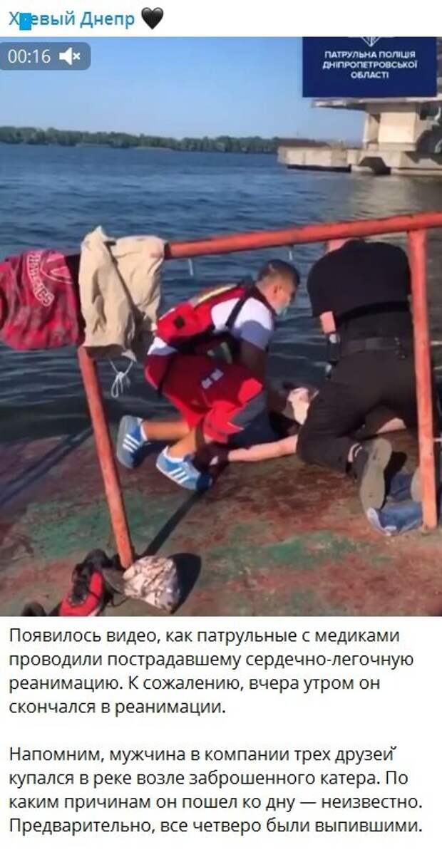 Также сообщается, что мужчина в компании трех своих друзей купался в реке возле заброшенного катера. По каким причинам он пошел на дно - неизвестно. Предварительно, все четверо были выпившие. Как известно, 29 июля около семи часов вечера с речного порта на спецлинию 102 поступила просьба помочь спасти человеку жизнь. Полиция оперативно прибыла на вызов и обнаружила, что компания мужчин употребляла алкоголь, а потом они решили искупаться в неустановленном для этого месте. В результате один из мужчин прыгнул в воду, и впоследствии его товарищи увидели, что он тонет. Им удалось в одиночку вытащить своего друга на пирс, после чего они вызвали помощь. Патрульные увидели, что мужчина не дышит, поэтому делали ему сердечно-легочную реанимацию вплоть до прибытия скорой. Когда приехали медики, днепрянина госпитализировали. При этом в больнице сообщили, что реанимационные мероприятия были успешными, и состояние мужчины стабилизировалось. Напомним, трагедия произошла с подростком под Днепром: "Прыгнул с мостика и запутался...". Ранее Politeka писала о ЧП в киевском парке: плавание в водоеме закончилось трагедией, детали. Также Politeka писала, что на Харьковщине жизнь ребенка оборвалась на глазах у родителей: подробности и фото с места трагедии.