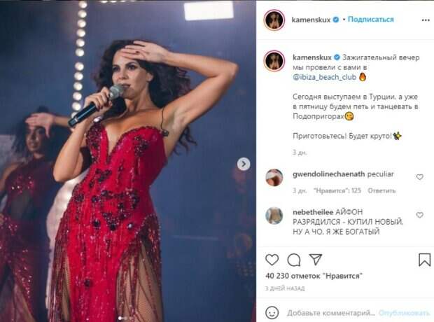 Поэтому она решила поделиться в Инстаграм кадрами с последнего выступления, где сверкала перед публикой в красном платье, расшитом множеством камней. « «Это было жарко!