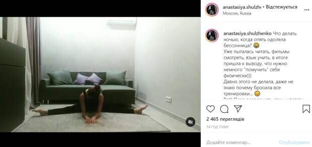 Заняться собой красотка решила ночью. «Что делать ночью, когда опять одолела бессонница? Уже пыталась читать, фильмы смотреть, язык учить, в итоге пришла к выводу, что нужно немного "помучить" себя физически», - написала Анастасия под видео, добавив, что давно бросила все тренировки. В комментариях стали бурно обсуждать таланты Шульженко. «Даже Тарзанка так не умеет, и Наташка так тоже наверняка не умеет, Наташка вообще на своих борщах и галушках с Глушко на пенсию выйдут», «Настя ты бы занялась собой, а не Наташей и Сергеем, пора создать семью детей родить, а не чужой жизнью жить. А то потом поздно будет», «Классная фигура у классной девушки», «Офигенно», «На работу ходить не пробовали?», «Красивая! Прикольное видео, приятное и быстрое!», - пишут пользователи сети. Напомним, что Анастасия Шульженко после "бегства" Тарзана от Наташи Королевой ошарашила покаянием: "Прости, мой родной...". Как сообщала Politeka, Анастасия Шульженко превратилась в рыжеволосую бестию и нашла замену Тарзану: "Куда старушке Королевой". Также Politeka писала, что Анастасия Шульженко запела и нарвалась на критику: "Тарзан с Королевой не сводят глаз".