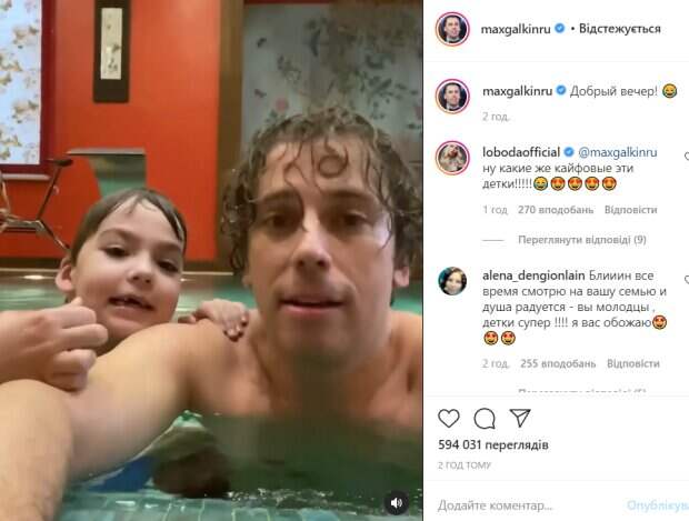 Юморист решил снять видео, а его дети начали дружно хохотать и называть отца папарацци. Лиза на видео была в шапочке для плаванья и очках, а Гарри обошелся без дополнительных аксессуаров. «Добрый вечер!», - подписал видео Галкин. За два часа его ролик посмотрели почти 600 тысяч раз. В комментариях ему оставили массу отзывов и комплиментов. Не обошлось и без негатива. «С такими денжищами не трудно делать из детей более развитых. Жизнь, к сожалению, не всем даёт такие возможности. Обычные дети. Хватит придумывать лести», «Добрый, счастливое семейство)) Вы прекрасный отец», «Хохотушки», «Блииин все время смотрю на вашу семью и душа радуется - вы молодцы, детки супер!», - пишут люди. Не сдержала эмоций украинская певица Светлана Лобода. Она оставила лайк и комментарий. «Ну какие же кайфовые эти детки!», - написала она под видео. Напомним, что счастливого Галкина после зажигательного танго с дочкой отправляют на «Танцы со звездами»: «Талантище». Как сообщала Politeka, дочь Пугачевой и Галкина в балахоне поразила внешним видом и поведением, видео. Также Politeka писала, что в сети рассекретили женщину, на которую растет похожей дочь Галкина, все ахнули: "Лиза - копия...".
