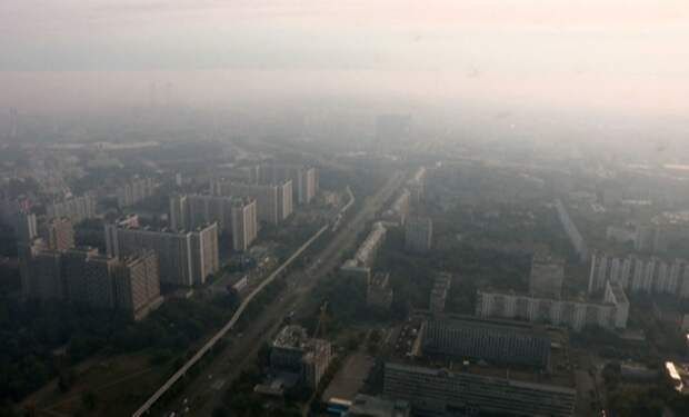 Смог от лесных пожаров в Рязанской области дошел до Москвы.Дымка от пожаров в Рязанской области окутала Москву,...