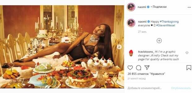Звезда надела лифчик на тонких бретельках и трусики с поясом, который выделил ее тонкую талию. Блестящие украшения дополнили откровенный образ. Кэмпбелл позировала в таком виде на столе с тортами, пирожными, печеньями и другими сладостями. Красотка стала главной сладостью или, можно сказать, деликатесом на столе. В посте черноволосая красотка написала, что счастлива. За полчаса публикация собрала более 20 тысяч лайков и много комментариев, в которых моделью восхищались и писали ей много приятных сообщений. "Идеальный десерт", - написал один из поклонников. Ранее мы писали, что Наоми Кэмпбелл позировала в различных экстравагантных нарядах, каждый из которых максимально подчеркивает неувядающую фигуру знаменитой модели. «Для популярного журнала, уже в ноябре», - коротко говорится в сообщении. Ранее сообщалось, что Наоми Кэмпбелл показала себя в черном наряде. Рядом можно увидеть еще одну девушку - Мариакарлу Босконо, известную топ-модель. Звезды показались вместе, позируя для снимка. Волосы у Наоми были распущены, а вторая девушка их решила собрать назад. "С Днем Рождения, @mariacarlaboscono, люблю тебя за то, что ты без извинений, настоящая, верная и красивая внутри и снаружи", - написала Наоми. Напомним, безупречная Наоми Кэмпбелл без лифчика распахнула пиджак А еще Politeka писала, что Наоми Кэмпбелл совсем без одежды и стыда показала тело богини, упав на кровать Также Politeka сообщала, что Наоми Кэмпбелл растаяла в объятиях молодой суперзвезды, горячие кадры