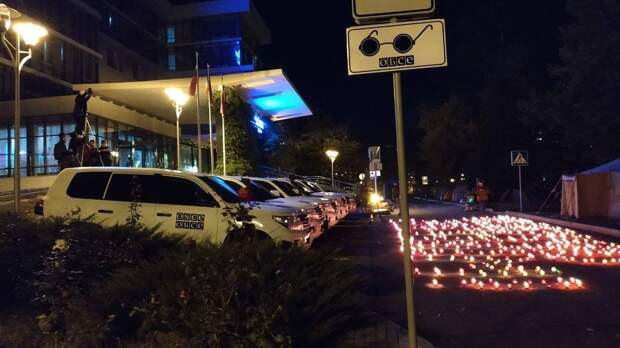 Ранее члены миссии фактически самоустранились от оценки инцидента с похищением луганского офицера. По оценкам очевидцев, размер выложенной из свечей надписи составил примерно 11х5 метров. Кроме того, участники акции также у здания повесили дорожный знак «Слепой пешеход», который за 7 лет войны у жителей Донбасса вызывает стойкую ассоциацию с ОБСЕ и профессиональной объективностью наблюдателей миссии. Также дончане пугали иностранцев тем, что громко включали аудиотехнику с песней «Вставай страна огромная».