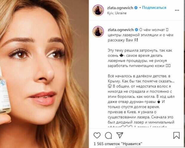 "Моя любимая сестричка пошла на подобную процедуру в клинику сомнительной репутации, там была какая-то акция на курс... Я предупредила, что лучше не рисковать. Итог: фолликулярный гиперкератоз и лечение, которое уже превысило $1000", - откровенно рассказала звезда. Она также порекомендовала украинцам сперва узнать о клинике, куда они планируют идти на процедуры. А если в населенном пункте нет нужной клиники, то можно не экономить и отправиться на процедуры в другие города. "Девчонки, будьте внимательны с этим видом процедур. Идите в хорошую клинику, узнайте всё про лазер, на котором там работают. Если нужной клиники, с хорошим аппаратом в Вашем городе не имеется- найдите время и посетите другой город, где такой аппарат есть. Ведь лазерную эпиляцию можно делать раз в месяц, а то и раз в полтора. Заодно, смена обстановки и небольшое путешествие", - резюмировала Злата Огневич в своей публикации. "Прелесть милая, нежная, прекрасная, любимая, ненаглядная", "Шикарное лицо", "Хорошо ,что вы написали об этом! Таких псевдоэкспертов которые делают разные процедуры сейчас много и нужно не стесняться задавать вопросы и не вестись на акции", "Красотулька", "Злата ты очаровательна", - написали фанаты под новой публикацией звезды. Напомним, Злата Огневич посветила грудью в топе из веревочек, прогулявшись по Киеву: можно смотреть вечно. Как сообщала Politeka, Злата Огневич в прозрачном платье без капли смущения развалилась на ступеньках Также Politeka писала, что Злата Огневич восхитила идеальным шпагатом, Волочковой понравится