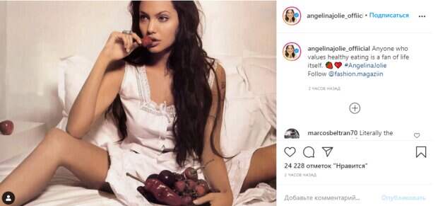 Голливудская актриса Анджелина Джоли покрасовалась образом в постели Звезда не ведет социальные сети и не делится фото с новых фотосессий. Тем не менее, в Инстаграм поклонники публикуют сами лучшие фото актрисы и делятся мнением по поводу ее внешнего вида. Также поклонники любят обсуждать образы Джоли, которые она примеряла ранее или даже когда была еще совсем подростком.