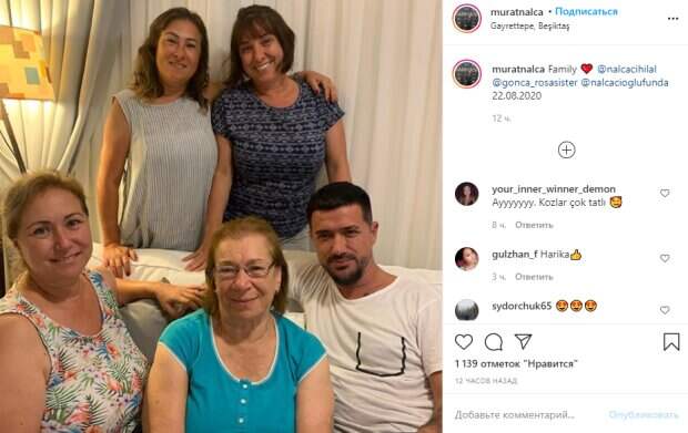 Бывший муж певицы Ани Лорак турецкий бизнесмен Мурат Налчаджиоглу растрогал сеть семейным кадром Как передает Politeka.net, артист опубликовал свежее фото в своем микроблоге в Инстаграм, на котором показал свою мать, сестру и других родственников. "Семья ❤️", - подписал фото Мурат, на котором впрочем отсутствуют его дочь и бывшая жена.