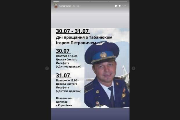 В результате погибли четыре человека, трое пассажиров (хасидов-иностранцев) и пилот. Пилотом оказался именно другом Комарова Игорь Табанюк, у которого за плечами сорок лет стажа пилотирования. Трагедия стала большим ударом для Дмитрия Комарова. Прощение с пилотом Игорем Табанюком состоялось в Церкве священомученика Йосафата Кунцевича, в Коломые. Дмитрий Комаров сообщил, что мэр Коломыи публично пообещал, что займется вопросом почтения имени Табанюка, сохранения аэропорта и присвоения ему имени известного пилота. «До встречи, Коломыя. Замечательный город, который для меня и тысяч туристов открылся только благодаря Игорю Табанюку», - написал Комаров. Напомним, трагедия у Комарова из "Мир наизнанку", украинцы соболезнуют утрате: "Теперь он ушел к сыну..." Как сообщала Politeka, сестра Комарова с "Мир Наизнанку" в мини-платье удивила растяжкой откровением: "Я просто обожаю..." Также Politeka писала, что Комаров из "Мир наизнанку" рассказал о своих приключениях в Украине, предупредив об опасности