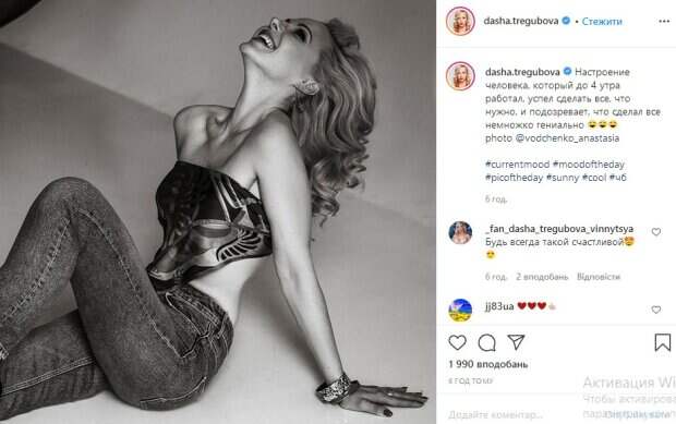 Популярная украинская телеведущая Даша Трегубова из «Х-фактора» похвасталась красотой в пикантном наряде Об этом сообщает Politeka со ссылкой на Instagram знаменитости. «Настроение человека, который до 4 утра работал, успел сделать все, что нужно, и подозревает, что сделал все немножко гениально», — говорится в сообщении.