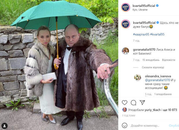 И Юрий, и Ирина позировали в необычных шубах. Выглядели они довольно странно. Ткач держал раскрытый зонтик, пряча себя и коллегу от дождя. «Что-то лето не очень балует», - подписали фото авторы аккаунта. В комментариях зрители оставили забавные отзывы об экранной парочке. «Лиса Алиса и кот Базилио!», «Класс, супер, дай Бог Вам здоровья», «Сопонару что, губы накачала?», «Вот Юрий с Ириной поднялись. Полтава рулит!», «Какие волосатые», «Летний прикид, последний писк моды», «Ничего себе оборотень», «Что-то улыбками не очень балуете», - пишут пользователи сети. Ранее мы писали, что Юрий Ткач поделился снимком со съемок. Cейчас комик много времени проводит на съемках в различных проектах. На свежем фото актер сидел на входе в свой вагончик, скривив гримасу. За это Ткача и любят поклонники. Он не боится быть смешным. "Мастер гениальной фотографии", - подписал он фото. Напомним, что Юрия Ткача "запаковали" в полицейскую машину вместе с коллегой: "Нас подставили!". Как сообщала Politeka, Ткач из "Квартал 95" заявил о своем жестком решении, неожиданное видео: "Буду открывать...". Также Politeka писала, что Ткач из "Квартал 95" засветился с двумя красотками в кабриолете: "Жену отправил на море".