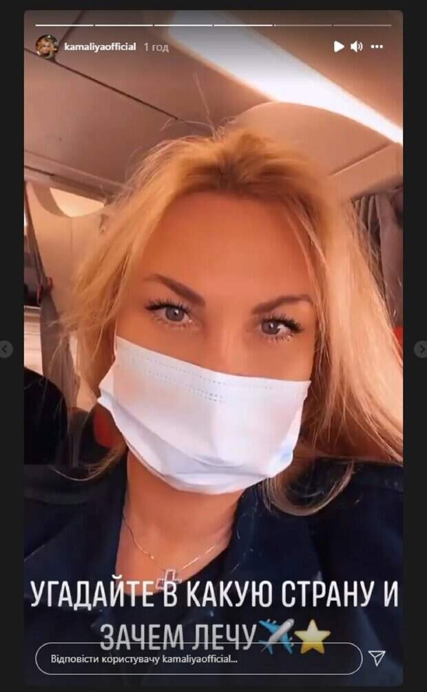 Не забывает Камалия и о социальных сетях, где делится с украинцами всем интересным. На новом сторис Камалия была в одноразовой маске, сидя в самолете. Как можно понять, певица собралась улететь из Украины. Артистка помахала рукой украинцам, снимая себя на камеру. "Угадайте, в какую страну и зачем я лечу", - написала Камалия под роликом, обращаясь к украинцам, чтобы они ей писали в директ ответы. Фанаты не ставили лайки и не писали комментарии, ведь в сторис Инстаграм подобные инструменты отсутствуют. Напомним, самая богатая певица Украины сообщила о болезни и раскрыла подробности А еще Politeka писала, что самая богатая певица Украины показала, какие травмы получила на соревнованиях Также Politeka сообщала, что самая богатая певица Украины похвасталась своей гордостью на соревнованиях