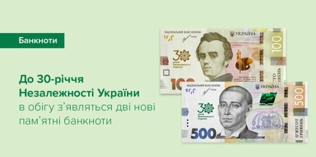 20 августа Национальный банк Украины выпустит памятные банкноты в 500 и 100 грн., посвященные тридцатилетию Независимости нашей страны. Об этом сообщили в пресс-службе НБУ. В Нацбанке рассказали, что в банкнотах сохранен традиционный дизайн, но с одним отличием. На этих деньгах появился символ тридцатилетия Независимости.