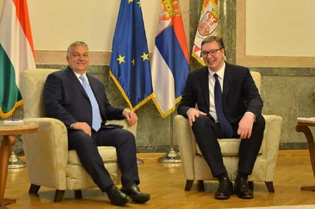 Премьер-министр Венгрии Виктор Орбан во главе правительственной делегации прибыл в Сербию, где встретился с президентом страны Александром Вучичем. Президент Сербии вручил орден Сербского флага первой степени члену делегации – главе МИД Венгрии Петеру Сийярто, передает корреспондент «ПолитНавигатора».