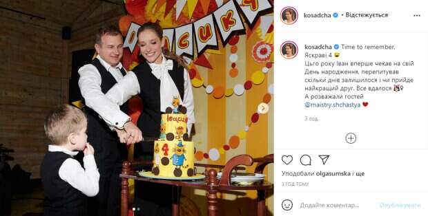 Однако, недавно Осадчая все же показала украинцам трепетные снимки, которые были сделаны на детском празднике – сыну Кати и Юры Ивану исполнилось 4 годика. На первом снимке можно увидеть счастливое семейство за разрезанием красивого праздничного торта. И пока родители управляются с ножом, малыш замер в предвкушении. Надо сказать, что это едва ли первое фото с Иваном, на котором можно чуть разглядеть черты лица, ведь телеведущие в своих соцсетях очень редко показывают сына. На втором снимке можно увидеть Катю, которая запечатлена в объятиях аниматоров во время праздника. В подписи к публикации Осадчая написала: "Time to remember. Яркие 4. В этом году Иван впервые ждал свой День рождения, переспрашивал сколько дней осталось и придет лучший друг. Все удалось. А развлекали гостей @ maistry.shchastya". фолловеры в восторге от новых фотографий звездного семейства, Катю и Юрия тепло поздравляют с днем рождениях их сыночка, засыпая комплиментами и пожеланиями в комментариях к публикации. Напомним, Ехидный Горбунов показал волчицам, как выглядит Винник перед эфиром "Голос країни": "Огонь". Как сообщала Politeka, Осадчая свела с ума элегантным образом с открытыми плечами на "Голос країни": "Ну красотка, блин". Также Politeka писала, Горбунов с сыном Осадчей замечен в неожиданном месте и в одинаковых одеждах: "Печалька для мальчика".