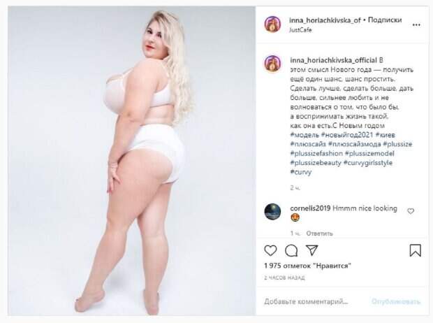 Об этом пишет Politeka.net со ссылкой на страничку знаменитости. "В этом смысл Нового года — получить ещё один шанс, шанс простить. Сделать лучше, сделать больше, дать больше, сильнее любить и не волноваться о том, что было бы, а воспринимать жизнь такой, как она есть. С Новым годом", - написала звезда под фото. Фанаты поставили более тысячи лайков и написали комментарии: "О, мой бог, выглядит привлекательно", "Очень красиво", "Красивая соблазнительная милашка", "Ты красивая, чудесная, великолепная", "Такое красивое соблазнительное тело, Инна", "Ты выглядишь потрясающе и великолепно, ты ангельская красавица", "Очень хорошая мадмуазель", "Хороша невеста!". Сообщалось, что украинская модель Инна Горячковская впечатлила словами о красоте. Уточним, что пост знаменитость сопровождала фотографией, на которой она предстает в прозрачном белье, хвастаясь роскошными «подарками» крупным планом. Напомним, украинка с 15-м размером потрясла бюстом в черном кружеве, показав прелести на весь экран Также Politeka писала, что украинка с 15-м размером дала поиграть своими "бомбочками" звезде Дом 2 А еще Politeka сообщала, что украинка с 15-м размером в прозрачном лифе показала свои "подарочки" у елки