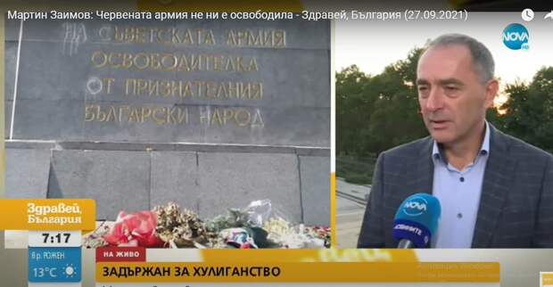 Известный в Болгарии банкир Мартин Заимов был задержан полицией за то, что хотел замазать краской надпись на монументе «Советской армии» в Софии. Об этом сообщает bgnews, передает корреспондент «ПолитНавигатора».
