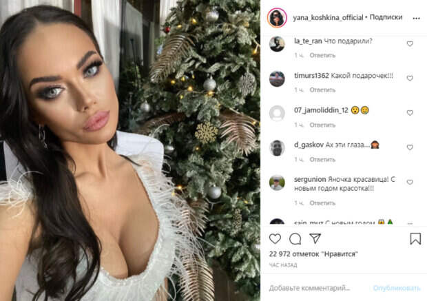Актриса и блогерша Яна Кошкина, которой приписывают роман с комиком Гариком Харламовым, эффектно поздравила с Новым годом Как передает Politeka.net, 30-летняя красотка опубликовала свежее фото в своем микроблоге в Инстаграм, на котором позировала возле украшенной елочки. Томная брюнетка показала крупным планом сочное декольте, появившись в кадре в белом платье с отделкой из перьев.
