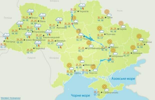 На севере также будет дождливо, повезет лишь жителям столицы и области. Несмотря на это, воздух днем прогреется до 26-28 градусов, а ночью показатель опустится до 15-17 по Цельсию. В центральных регионах осадки будут лишь в Винницкой области. Синоптики прогнозируют днем от 26 до 32 со знаком «плюс». Ночью их сменят 15-17 выше нуля. На юге Украины будет солнечно и без осадков. В дневное время суток будет невероятная жара, вплоть до +32 градусов. Ночью похолодает до 16-20 тепла. Также без дождей сегодня будут и жители восточных регионов. Здесь на улице будет 27-29 тепла. Ночью посвежеет до 15-16 градусов тепла. Кроме того, синоптики из Укргидрометцентра прогнозируют, что сегодня днем в западных регионах будет I уровень опасности. А в Хмельницкой, Николаевской, Херсонской и Донецкой областях наоборот, повышенный уровень пожарной опасности. Жителей Киева и области сегодня ждут локальные дожди с грозами, которые накроют практически весь правый берег. Днем ожидается от 26 до 28 по Цельсию, а ночью около 15-17 градусов. Напомним, погода не пощадит украинцев, стало известно о новом ударе: "похолодание до +11 и...". Как сообщала Politeka, погода порадует украинцев идеальными условиями, но повезет не всем: кто окажется не у дел. Politeka писала, что лето резко сменит акценты, дожди с грозами атакуют с новой силой: кому не повезет.