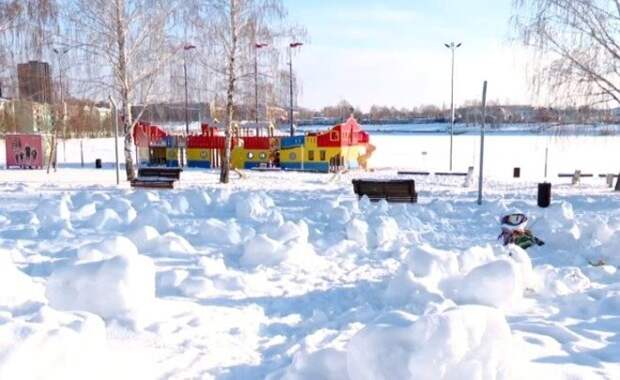 Пляж Альметьевска совсем недавно украшали снежные фигуры — они остались после фестиваля по массовой лепке снеговиков, участие в котором приняли 200 горожан. Тогда Альметьевск установил рекорд России по наибольшему числу снежных фигур на одной площадке. Теперь на площадке вместо снеговиков остались лишь снежные валуны.