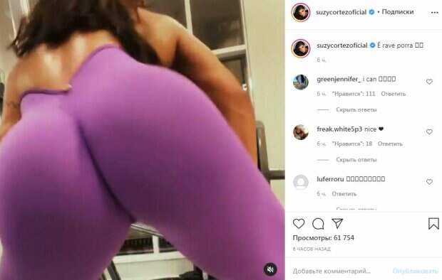 (Чтобы посмотреть видео, доскролльте до конца страницы) Модель встала к камере спиной и засняла свои упругие места крупным планом. Кортес надела обтягивающие лосины, которые отлично выделили ее стальной "орешек". Звезда стала активно крутить пятой точкой, при этом ни разу не сняв своего лиц. Благодаря такому жаркому видео, можно было рассмотреть идеальные формы и рельефы во всей красе. "Это гребаный рейв