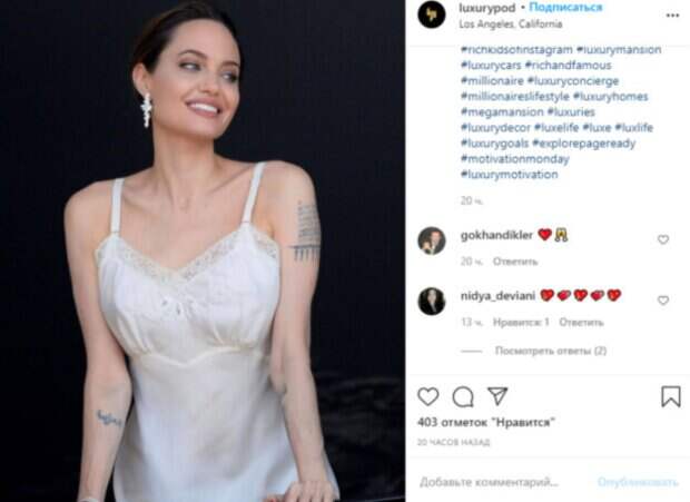 За кадром Джоли была показана в своих нарядах, которые примерила для ярких фото дома. Съемку устроили прямо в кабинете Джоли, в ее саду на заднем дворике, а также у бассейна, где звезда без макияжа покоряла своей естественной красотой. Не обошлось и без пикантных кадров, на которых Джоли в одной белой майке блеснула бюстом без лишней откровенности. Также стало известно, что последние года карьеры были для звезды сложны и даже непростыми, но она продолжает залечивать раны и постепенно возвращается в рабочее русло. Яркая съемка стала свидетелем эпичного преображения звезды. Отметим, даже в простой комбинации или пижаме для рекламной фотосессии звезда будет выглядеть просто, но дорого. В частности, речь не о цене, а скорее об аккуратном дизайне и презентабельном виде. Распущенные локоны и легкий макияж идеально завершают скромный «лук» знаменитости. «Красивые Татуировки; Супер пупсик; Как всегда красиво