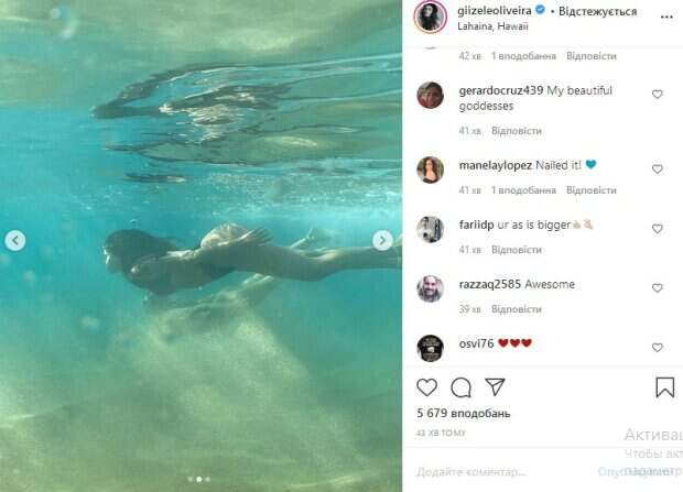 Уточним, что на опубликованных фотографиях Оливейра позирует рядом со своей подругой под водой, демонстрируя свои лучшие части тела. Также модель поделилась роликом, где они с подругой ныряют под водой, стараясь как можно глубже окунуться. «Я без ума от вас! Продолжайте в том же духе», «это что-то невероятно», «вот это я понимаю, начало 2021 года», «фантастические формы», «боже, да вы восхитительны», «невероятно просто», - пишут ее поклонники. До этого мы рассказывали, что модель Жизель Оливейра из Victoria's Secret покорила фанатов, показав безупречную фигуру в мокром купальнике Так, на фотографии красотка позирует, сидя на корточках на пляже, игриво посматривая в камеру. Сам снимок модель сделала черно-белым, что добавило ему особенной пикантности. Напомним, томная брюнетка из Victoria’s Secret распахнула пиджак, завлекая видом А еще Politeka писала, что жгучая брюнетка из Victoria’s Secret посветила упругим «персиком» в стрингах Также Politeka сообщала, что бразильская красотка из Victoria’s Secret в смелом наряде заставила любоваться собой