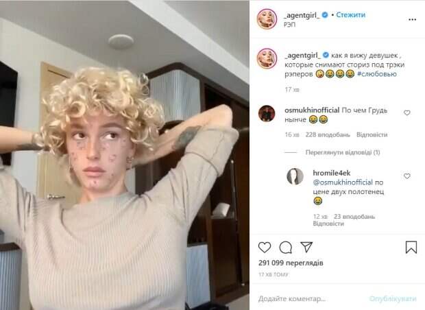 net. Образ она дополнила рисунками по всему лицу, созданными с помощью фильтра. Отметим, что процесс приготовления к самой пародии Настя также показала на записи, которая позже и появилась на ее странице в Инстаграм. Когда образ был воссоздан, Ивлеева включила трек и начала активно трясти грудью и попой на камеру, причем пятую точку она, по примеру тех, кого высмеивала, сунула прямо в камеру. Закончилось пафосное видео падением после попытки повторить трюк с тверком у двери, и красноречивым нецензурным словом по этому поводу. Отметим, что поклонники ведущей оценили юмор по достоинству. Правда, были и те, кто решил подколоть девушку, отметив, что, наверное, это пародия на ее мужа, репера Элджея. «Это самая лучшая культурная женщина в мире! Я обожаю тебя, Настя. Ты мой идеал 😂😂😂😂😂👍👍», «Девачки, остановите мой ор😂😂😂», «я сначала подумала пародия на своего мужа😁», «Элджей в шоке», – пишут в комментариях. О том, что видео имеет бешеный успех, говорит количество просмотров. Всего за полчаса после публикации эта цифра перевалила за 420 тысяч. Всего же на страницу Ивлеевой подписаны 17,7 млн. человек. Напомним, что Ивлеева из «Орла и решки» со скорченным лицом показала реалии жизни с Элджеем: «Горе в семье». Как сообщала Politeka, Настя Ивлеева в одной ночнушке показала, как превратилась в жгучую брюнетку: "Беллуччи на минималках". Также Politeka писала, что Настя Ивлеева из "Орла и решки" лишила родную мать заработка: новые подробности скандала в семье.