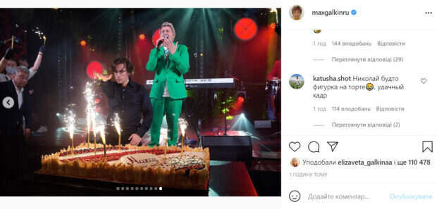 В Сети долго обсуждали поведение 72-летней Аллы Пугачевой, которая, забыв про возраст, стала страстно целовать именинника. Было на празднике и много других моментов, которыми Галкин решил поделиться у себя в сети. «Ох, как было весело! В этих замечательных фото лишь часть атмосферы этого незабываемого вечера. Не могу не поделиться», - подписал серию снимков артист. Среди фото был эпизод, на котором Галкин зажигал с российским певцом Николаем Басковым возле громадного торта. Басков пел, а Галкин, судя по фото, подтанцовывал. «Это был нереальный праздник!!! Спасибооооо!! Любим», «Господи! А Киркоров то где???! Как же без него то?», «Николай будто фигурка на торте, удачный кадр», «Молодцы!!! Все, что нажили, это все Ваш талант и трудоспособность», - пишут пользователи сети. Также на кадрах был момент, где именинника подбрасывали на руках. Напомним, что 72-летняя Пугачева оторвалась на юбилее Галкина, как будто ей 18: закатили настоящий пир. Также Politeka писала, что потолстевшая Пугачева удивила внешностью рядом с Галкиным-"мальчиком": "Максим молоденький и красивый, а...". А еще Politeka сообщала, что Галкин показал необычное увлечение 72-летней Пугачевой и их дочери Лизы: "Гениально и просто".