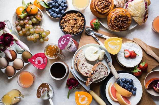 Но к выбору меню для завтрака тоже нужно подходить ответственно. Так, всеми любимые и давно знакомые продукты на самом деле далеко не полезны, особенно с утра. Среди них: Сухие завтраки, хлопья и магазинная гранола. Все эти "любимчики" детей и взрослых, во-первых, изготовлены из рафинированной муки, а значит, ни белка, ни пищевых волокон в них практически нет. А во-вторых, в таком завтраке полно сахара. Да, они утолят голод, но как и все быстрые углеводы, насытят буквально на пару часов. Залить молоком шоколадные шарики, конечно, просто и быстро, но лучше заменить их цельной овсянкой. Фруктовые йогурты и обезжиренные творожки. Все фруктовые наполнители – это сахар, красители и крахмал. От полезного в таком продукте остается только название. К тому же, из обезжиренных молочных продуктов практически не усваивается кальций и витамины. Врачи рекомендуют употреблять молочку с жирностью не менее 5 %. А сладкие йогурты лучше всего заменить на обычные по типу греческого (без добавок и ароматизаторов), смешав его с ягодами или семенами чиа. Пшеничный хлеб и сдоба. Все, что мы так любим запивать утренним кофе, увы, совсем не полезно. В муке высшего сорта при промышленном производстве не остается ни витаминов, ни клетчатки, зато много крахмала и клейковины. Сладкая выпечка способна провоцировать скачки сахара в крови, чрезмерную выработку инсулина и, как следствие, чувство голода. Завтракать лучше хлебом из муки грубого помола, цельнозерновым или с отрубями. Сосиски. Все мясные продукты промышленного производства изготовлены из мяса далеко не самого лучшего качества. Нередко они даже называются "мясосодержащими" – в них много ароматизаторов, консервантов, жира, пряностей и соли. Большое количество соли в рационе влечет за собой проблемы с давлением, почками и прочие неприятности. Вместо сосисок лучше завтракать яйцами и овощами. Пакетированные соки. О пользе соков на завтрак диетологи спорят уже давно как минимум потому, что свежевыжатый фреш нельзя пить натощак. В концентратах же из пакетов от соков – только воспоминание и аромат. В процессе изготовления они теряют всю клетчатку и витамины, зато щедро сдабриваются сахаром и консервантами. Если хочется побаловать себя с утра чем-то фруктовым, можно приготовить смузи.