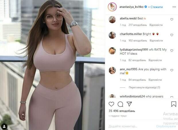 Знаменитость решила дополнить образ очками и элегантными браслетами. Поклонники знаменитости пришли в восторг от увиденного. «Беспредельный соблазн», «красотка до невозможности», «выглядишь невероятно», «фантастический вид», «очень мило выглядишь», «боже, не могу налюбоваться», - пишут они. До этого мы рассказывали, что знаменитая российская модель Анастасия Квитко, более известная как русская Кардашьян, извивалась на пирсе ради эффектных кадров. Красотка вскружила голову многим пользователям сети. Фанаты, которые не в силах устоять перед такой искусительницей, создают соответствующие странички в Инстаграм. Красотка надела купальный наряд с пикантным вырезом посередине. Из большого декольте едва не вываливалась грудь знаменитости, но ее это нисколько не смущало, наоборот она всячески извивалась. Напомним, что Анастасия Квитко не удержала сочные формы, натянув слишком маленькое бикини: "Это просто мед!". А еще Politeka писала, что Анастасия Квитко показала свою «ким» в откровенном купальнике: «Вау, светится». Также Politeka сообщала, что Анастасия Квитко подразнила пышными "пончиками" в одной сеточке и кружевах: топ "вкусных" образов