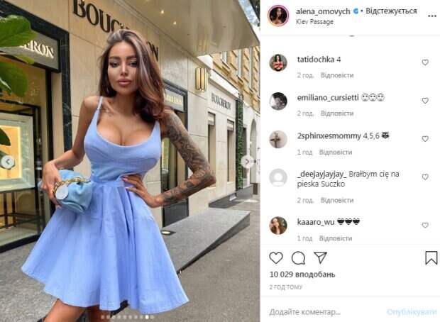 Также модель примеряла светлые летние джинсы и кофту, которая обтянула ее прелести. Но больше всего поклонникам понравились фото, на которых девушка позировала в коротком цветастом платье с очень глубоким декольте. Омович заняла неприличную позу, впечатлив размером своих «дынек», которые она совсем недавно увеличила. «Я влюблена в эти образы», - написала модель под фото. За два часа ее пост собрал более 10 тысяч лайков. В комментариях красотке оставили массу приятных слов. «Все шикарно», «Ты всегда прекрасно выглядишь», «Великолепно», «Алена, Вы ушиваете джинсы? на такую талию наверное сложно подобрать?», «Платье с цветами очень идёт», «Куколка», - пишут пользователи сети. Ранее мы писали, что украинская Кардашьян сфотографировала себя в лифте в весьма пикантном наряде. Девушка была одета в белый спортивный лифчик и трусы, похожие на мужские. Сверху она накинула большой строгий пиджак. Дополнили образ солнцезащитные очки, розовые ногти и большая сумка. Напомним, что Омович встала в развратную позу, выставив напоказ главную гордость: «Какой орех». Как ранее сообщала Politeka, Омович избавилась от одежды и показала, как разминают ее «булочки»: «Это лучшая работа». Также Politeka писала, что Омович едва втиснула огромный бюст в ультра-мини: "Теперь арбузов захотелось".