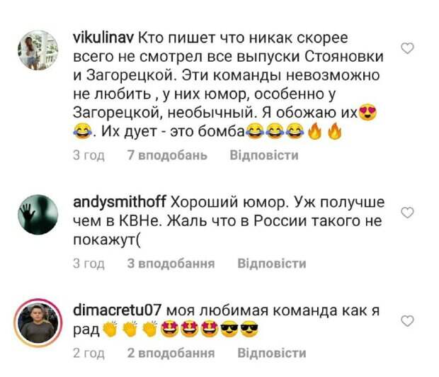 Так, вели новый концерт двое лысых – Евгений Кошевой и Потап, но больше всего публику порадовал еще один дуэт. Оказалось, что на сцене "Лиги Смеха" воссоединились две конкурирующие команды – "Загорецкая" и "Стояновка". Парни объединились в команду "Веселые Бобры" и здорово повеселили поклонников. Тандем действительно получился весьма неординарным, особенно учитывая, что эти две команды во многих играх были заядлыми соперниками, а однажды даже разделили на двоих кубок "Лиги Смеха". Видео выступления "Веселых бобров" опубликовали на странице "Квартала 95" в соцсети Instagram. В подписи к ролику говорится: "Загорецкая Л.С." + "Стояновка" = "Веселые Бобры". Когда соперничество превратилось в дуэт. Как вам дебютное выступление ребят?". Конечно же пользователи кинулись обсуждать публикацию, выражая свое мнение по поводу такого необычного дуэта. "Кто пишет, что никак скорее всего не смотрел все выпуски Стояновки и Загорецкой. Эти команды невозможно не любить, у них юмор, особенно у Загорецкой, необычный. Их дуэт – это бомба", "Хороший юмор. Уж получше, чем в КВНе. Жаль, что в России такого не покажут", "Класс, молодцы!", - пишут в комментариях к видео. Напомним, Кошевого из "Квартал 95" за рулем роскошного авто подловили на грубом нарушении: "Сразу видно, что. ..". Как сообщала Politeka, Елена Кравец из "Квартал 95" публично обратилась к дочери после опоздания: "Ты никогда не перестанешь...". Также Politeka писала, Кравец из "Квартал 95" дерзко бросила вызов Кошевому, покорив ярким выступлением: "До встречи на...".