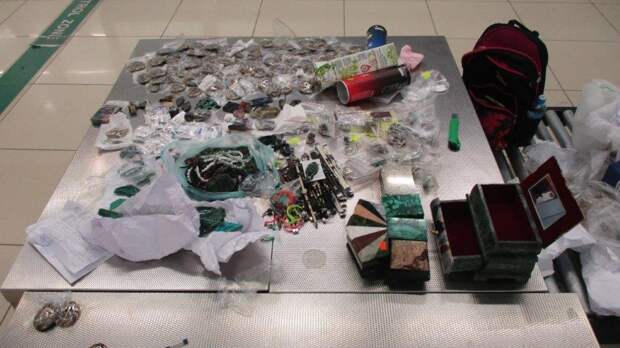 56-летняя жительница Израиля пыталась вывезти из Екатеринбурга 405 украшений и сувениров из уральских самоцветов на сумму более 1000 евро. Общий вес минералов – 15 килограммов. Все изделия задержаны и отправлены на экспертизу.