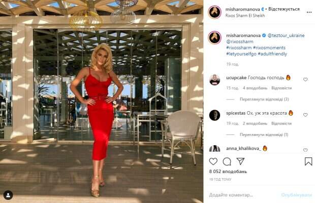 Украинская певица Миша Романова, экс-солистка группы "ВИА Гра", без тени смущения сверкнула аппетитными прелестями Как передает Politeka.net, 30-летняя красотка опубликовала свежее фото в своем микроблоге в Инстаграм, на котором предстала в обтягивающем красном платье. Блондинка с идеально уложенными локонами и ярким макияжем позировала при входе в ресторан, поставив руки на пояс.