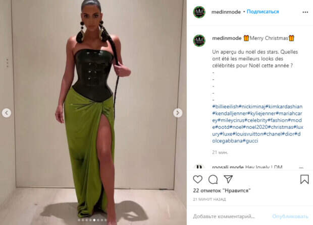 Популярная модель, бизнесвумен и блогер Ким Кардашьян показала смелый образ с латексным боди и шелковой салатовой юбкой Популярная фотомодель, звезда реалити-шоу, актриса и успешная бизнесвумен умеет привлечь внимание поклонников к себе в Инстаграм при помощи одной лишь одежды. Все дело в том, что Ким не только любит подбирать эксцентричные и пикантные наряды, но также и создает их сама, открыв свой магазин.
