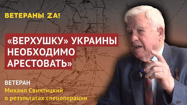 И на Украине будет создано другое правительство, которому не позволят иметь военные структуры – военные заводы, армию и так далее», – сказал Михаил Свинтицкий. Ранее ветеран Великой Отечественной войны поддержал проведение специальной военной операции. Также он заявлял, что Украина планировала напасть на Россию. Также спецоперацию поддержали ветераны Великой Отечественной, Первой Чеченской и Афганской войн – Атом Давтян, Леонард Пельт, Лидия Глухова, Николай Паршиков, Игорь Павлов, Лидия Дорохина, Галина Мешкова, Василий Мирошниченко, Сергей Алдохин, Сергей Косарев и Геннадий Барков.