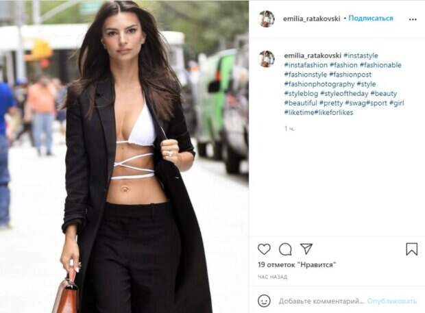 Знаменитая модель Эмили Ратаковски поражает фигурой в любом стильном образе Стиль знаменитой модели не раз бурно обсуждался в сети разными фанатами, ведь стройная красотка может удивить самыми разными стильными нарядами, которые едва ли скрывают ее тело. В частности, на большинстве кадров из прогулки, Эмили будет замечена в укороченной майке, футболки или же кроп-топе.