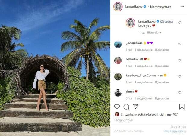 Это стало причиной бурной реакции со стороны ее поклонников. «Красиво», «очень круто выглядишь», «солнечная малышка», «обожаю тебя! Выгядишь просто сногсшибательно», - пишут они. Обратим внимание, что среди лайкнувших фотографию была странице и самой Софии Ротару. Как сообщалось до этого, 19-летняя модель Соня Евдокименко, которая является внучкой украинской певицы Софии Ротару, похвасталась красотой в белоснежном наряде На фотографии Евдокименко позирует в белоснежном наряде, элегантно умостившись на полу. Сама звезда написала, что это «домашняя серия» фотографий. Несмотря на то, что особого комментария к снимку знаменитость не оставила – ее поклонники буквально «взорвались» от увиденного. Напомним, внешность нового жениха-миллионера 19-летней внучки Софии Ротару обескуражила народ: "Какой-то старенький". Как сообщала Politeka, эффектная внучка Софии Ротару задрала ноги выше головы, приспустив одежду, родители в восторге. Также Politeka писала, что роскошная внучка Софии Ротару поразила неземной красотой.