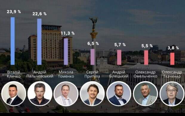 Так, на первом месте оказался ныне действующий мэр Виталий Кличко - его поддержка составила 23,9%. Не намного отстает (что должно бы стать мэру тревожным звоночком) его главный соперник, самовыдвиженец, Андрей Пальчевский, за которого готовы проголосовать уже сегодня 22,6% респондентов. Третью позицию занял Николай Томенко, лидер партии "Рідна країна" с 11,3% голосов опрошенных. Следующим в списке оказался Сергей Притула ("Голос") - его предпочли 6,5% киевлян. Замыкающим в пятерке стал Андрей Билецкий ("Национальный корпус") - за него свои голоса готовы отдать 5,7% опрошенных. Как рассказывает социолог Николай Спиридонов, мэр Киева Виталий Кличко прогнозируемо теряет поддержку среди киевлян. Он утверждает, что городской голова "во время эпидемии вируса бежал впереди паровоза, пытался казаться еще более жестким, чем Кабинет министров". Не исключено, что личный рейтинг Кличко обвалился из-за ежедневных брифингов, с помощью которых политик пытался пиариться. Ранее мы сообщали, Пальчевский жестко раскритиковал использование мэрами средств из госбюджета в целях пиара накануне выборов-2020. Общественник акцентировал внимание, что за счет бюджетных денег градоначальники пытаются выставить себя в лучшем свете, поэтому подал идею, как бороться с такой тенденцией: "Есть законодательная инициатива запретить всем придурковатым мэрам городов использовать бюджеты для своих корыстных целей перед выборами. Потому, что перед выборами они все, как бешеные, начинают ремонтировать дороги, и везде написано, что это делается по инициативе, например, мэра Кличко и т.д.", - отметил Пальчевский. Напомним, Пальчевский раскрыл главный недостаток Зеленского, страдает вся страна: "Что делать? Надо менять". Как сообщала Politeka, Пальчевский и Кличко: киевляне определились с фаворитами на выборах-2020, данные опроса Также Politeka писала, что неопытность Зеленского сыграла злую шутку с Украиной, Пальчевский раскрыл детали.