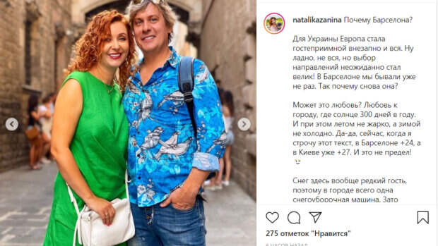 Супруги отправились на отдых в Барселону, Испания. На снимке в обнимку стоят Степан и Наталья. Рыжеволосая красотка в длинном легком зеленом платье, а артист в джинсовых шортах и яркой голубой рубашке на фоне собора. В этой публикации Наталья поделилась своим впечатлением от отдыха в Барселоне. Как заявляет жена артиста, они уже не первый раз в этом городе, но возвращаются туда снова и снова. Поклонники засыпали супругов комплиментами: "Такие яркие! Глаз не отвести, "Фото очень красивое", "Прекрасная пара", "Хочу к вам". Ранее сообщалось, Кошевой и Казанин из Квартал 95 "поиздевались" над Тиной Кароль: "У них нет человеческого сердца" Также, украинцам показали, как Казанин и Пикалов из «Квартал 95» выглядели в начале карьеры: «А Степан что, вампир?» Politeka рассказывала, Казанин из "Квартал 95" показал, что делал с Андреем Данилко в Турции: "Тусили и бабули, и Сердючки"