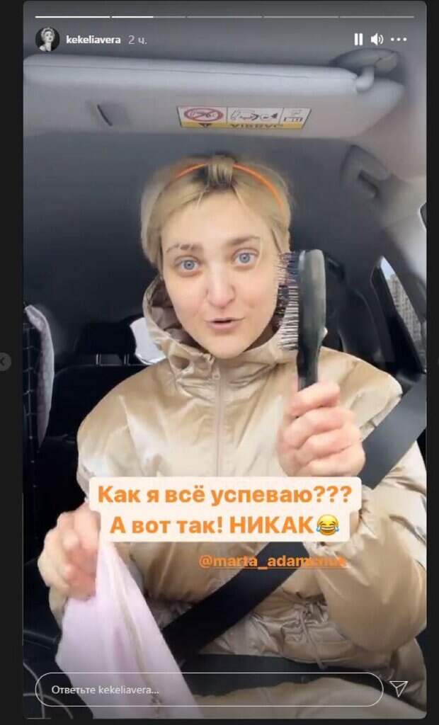 "Вот так вот я все успеваю. Мамка вышла, ну какое вышла - вылетела. Орудие труда с собой", - сказала Вера. "Как я все успеваю? А вот так. Никак", - написала под кадрами Кекелия. "Я с мокрыми волосами, даже не расчесалась", - ответила Марта, показывая шевелюру. "Марточка. Твое царство - машина, спасибо ей. Это гримерка и домик, и столовая, и спальня, и все в мире. Сейчас, раз, два, три", - сказала Вера. "Все, Марточка, смотри. Показывать тебя? Да ты красивая", - завершила Вера, показывая, как сделала мейкап в машине. "Готово", - подписала кадры Кекелия. Мы писали, что известная украинская певица и актриса Вера Кекелия показала своего подросшего сына. Так, в одном из последних постов Вера позировала, сидя на подоконнике. Блондинка была в свитере и брюках, она улыбалась, придерживая Ивана, который устремил взгляд в большое окно. Напомним, блондинка из "Женского квартала" в изысканном наряде заинтриговала песней Также Politeka сообщала, что блондинка из "Женского квартала" устроила парад платьев в гримерке, горячие кадры А еще Politeka сообщала, что блондинка из "Женского квартала" в гримерке пустилась в пляс, зажигательные кадры