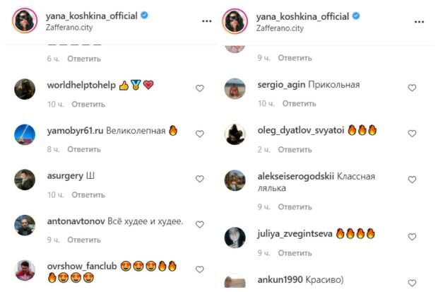Она позировала в элегантном платье-мини черного цвета с внушительным декольте. Платье расшитое пайетками и стразами и пикантный низ, подчеркивают упругие бедра и ягодицы артистки. Кошкина дополнила вечерний лук золотистыми босоножками с тонкими ремешками. В качестве броских украшений – небольшие свисающие серьги. Она расположилась на красной дорожке, позируя на фоне плаката из мероприятия. Стройная и соблазнительная фигура Яны Кошкиной заставила сеть писать волнительные и хвалебные комментарии. А некоторые пользователи сети заметили, что фигура артистки стала более худой. "Прелесть", "Супер класс", "Красотка