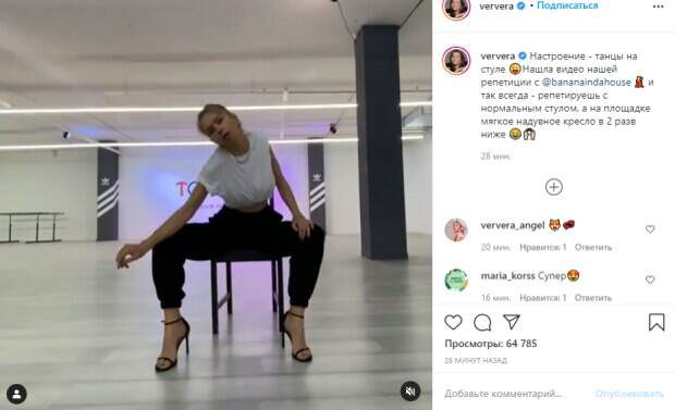 Экс-ВИА Гра Вера Брежнева взвинтила до предела пикантной выходкой Как передает Politeka.net, 38-летняя звезда опубликовала в своем микроблоге в Инстаграм свежее видео, в котором продемонстрировала один из своих талантов (чтобы посмотреть ролик, проскролльте вниз). Так, Вера предстала в черных спортивных штанах, футболке, завязанной на талии, и босоножках на высокой шпильке.