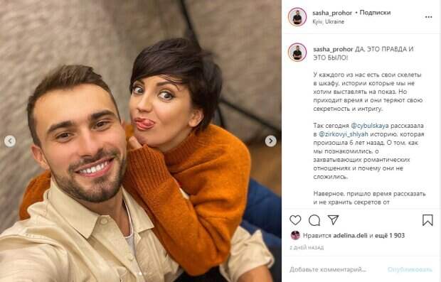 "У каждого из нас есть свои скелеты в шкафу, истории которые мы не хотим выставлять на показ. Но приходит время и они теряют свою секретность и интригу", – пишет Прохоров. Также он признался, как начинался их роман. "Ночная прогулка после концерта сблизила нас в тот моменти и "Завтрак у Тиффани" положил начало нашим не совсем дружеским отношениям", – разоткровенничался танцор. Прохоров утверждает, что он такой человек, который редко жалеет о сделаном и произошедшем. "И я рад, что эта кратковременная, но в то же время безумная, страстная, спонтанная и только для нас история была именно тогда и именно с Олей", – заявил хореограф. Сейчас, говорит Александ, его с Цибульской связывают дружеские отношения. "Мы поддерживаем друг друга. Совсем скоро вы увидите нашу новую творческую работу