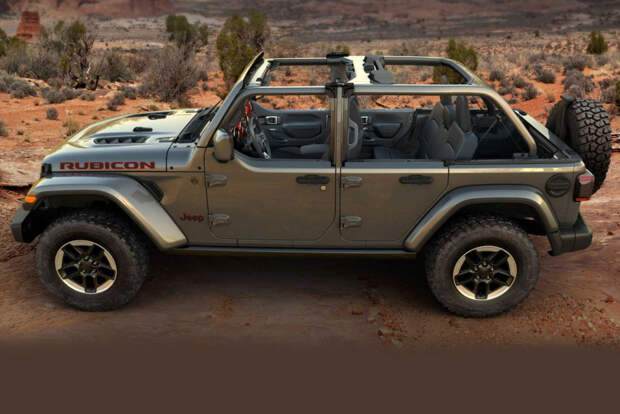 Штатно Wrangler оснащен полноценными боковыми дверьми с металлическими оконными рамками и электрическими стеклоподъемниками. Конечно, такие двери можно легально демонтировать, однако для тех, кто хочет усилить ощущение открытого пространства, но не готов мириться с полным отсутствием дверей, компания предложила так называемые «half doors», то есть полудвери.